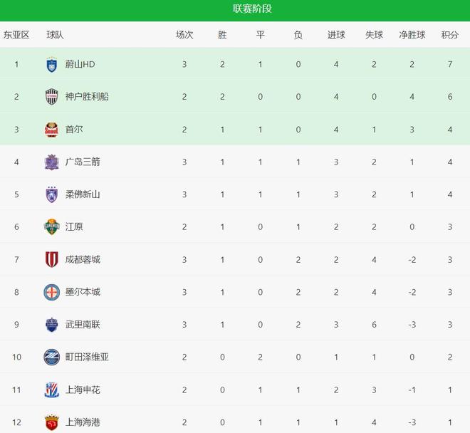 随着蓉城0-2爆冷,亚冠最新积分榜:海港掉到垫底,榜首球队易主